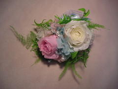 豪華なレースのホワイトドレスのため、メインの大きな薔薇は