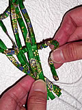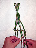 (2)縮めたコードを他の5本に交互にくぐらせながら斜めに荒々と編みます。