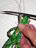(5)コードからはみ出したワイヤーを切りそろえ、一本づつペンチで2回折りして整えます。残ったコードで、ペーパービーズ(ばら)の作り方=Bを参照しながら作って下さい。