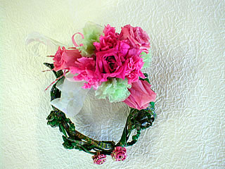 リース型にして、プリザーブドフラワー(自家製)を飾った場合 |